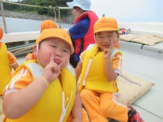 3、4歳児はクルージング体験、5歳児はいけすにおりてのエサやり体験を行いました。
