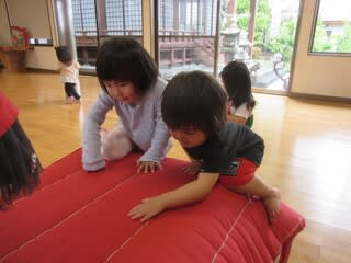 1・2歳児さんは、支援センターに行って、巧技台に挑戦しました。