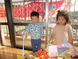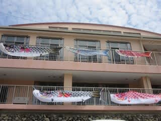 保育園のベランダを泳いでいるこいのぼりさんたちでした!!