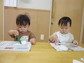 しっかりペンを持って、描くことができるようになってきた1歳児さんです