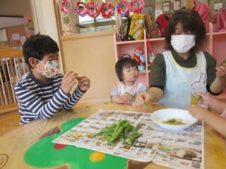 自分たちで下ごしらえして、茹でたてのスナップエンドウの味は最高だったことでしょう。
