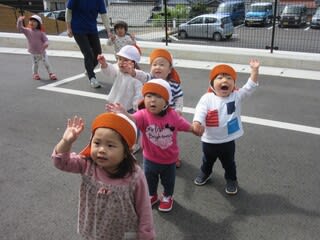 1・2歳児さんは保育園のすぐ下にある駐車場へお散歩に行ってきました