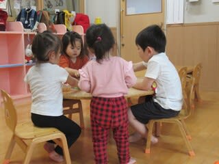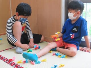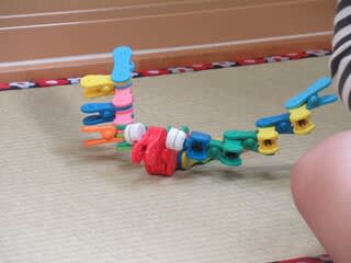 もちろん園庭では遊ぶことは叶わず、保育室で静かに⁇語りながらアイクリップなどで形を作ったり
