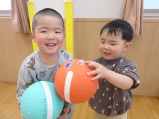 お友達とやりとりすることも増え、投げ合いっこしている姿もありました(^^)