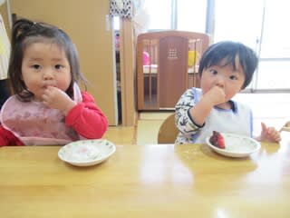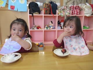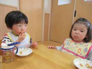 おやつの時間を通して、またひとつ0歳児の成長を見せてもらうことが出来ました。