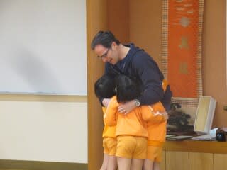 今日で最後のレッスンとなると、寂しく抱きつく年長児さんに、