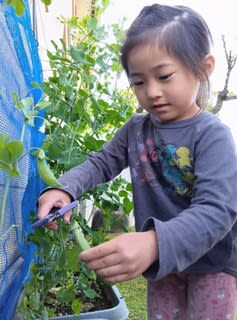 また収穫したスナップエンドウは神様へお供えしました。自然の恵みに感謝です。