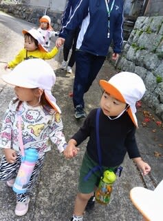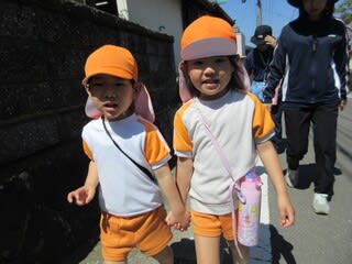 1歳児から5歳児、しっかり手をつないで最後まで歩くことができました