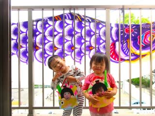 ベランダで大きく広がる鯉のぼりや、兜飾りとともに写真を撮りました(*^▽^*)