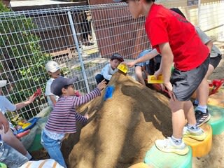 この日はとても天気が良くて、木陰になっていた砂場では、1年生から6年生までのお友だちが、