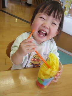 透明のカップに好きな色の花紙を丸めて、いれていきます!(^^)!
