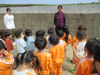 第一避難場所である園庭で点呼したあとは、火災時のお約束をみんなで確認しました。