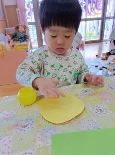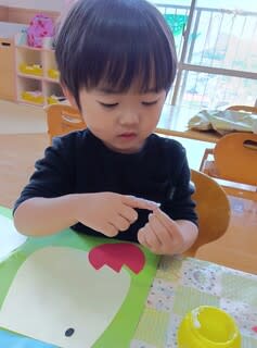 早速指にのりをつけてペタペタ(*^▽^*)