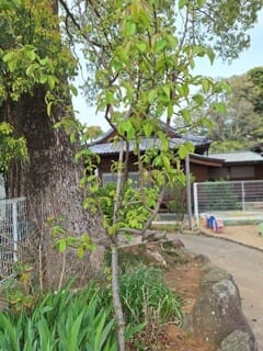 神社のクスノキの下に小さな花壇がありますが、そこにひっそりと立つこの木。