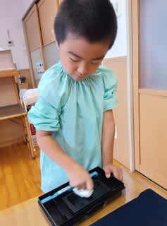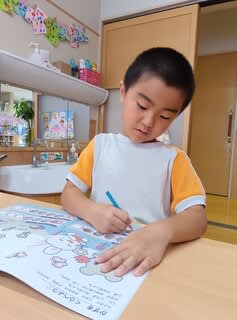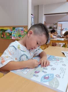 教材のワークに取り組んでいる5歳児さんの様子です。