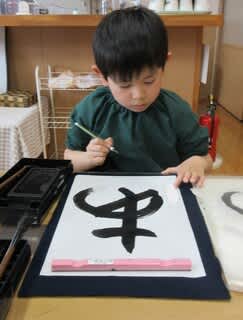 今年度最後の習字教室があり、5歳児さんの様子を4歳児さんも見学しました(^^)