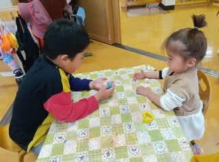 3歳児さんの粘土あそびの様子です!