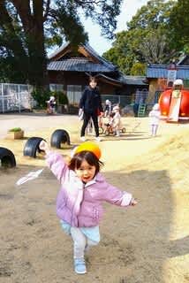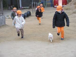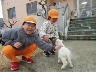園庭をぐるぐる一緒にかけっこです(*^^*)!可愛いヤギの赤ちゃんとのふれあいの時間となりました。