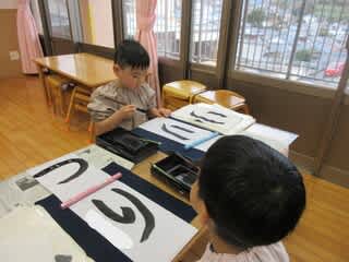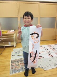 新年最初の習字教室では、普段使っている半紙ではなく大きい習字紙に書きました。