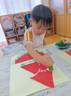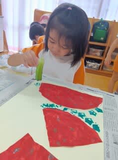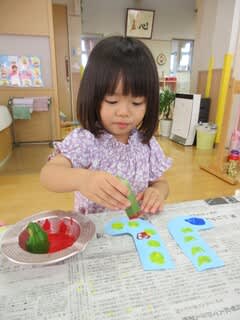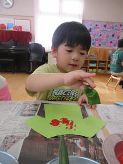育てた野菜を使ってこの日はペタペタとスタンプ(^^)