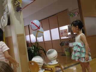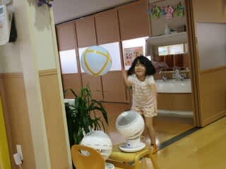 先日風船を使って遊んでいたら、ちょうどサーキュレーター付近に飛んで行った風船が!!!