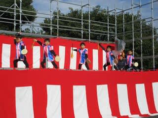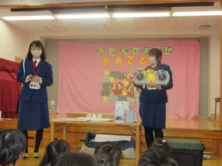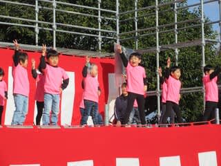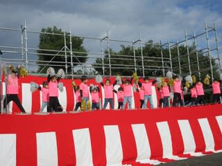 小学校へ150周年記念に地域の産業祭出演、お遊戯会と