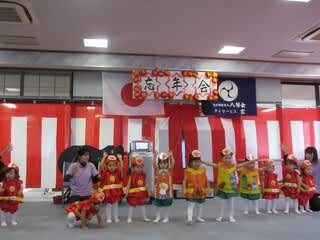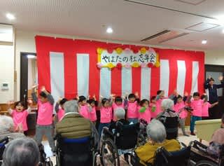 隣接する法人内高齢者施設の忘年会へ、全園児で参加してきました。