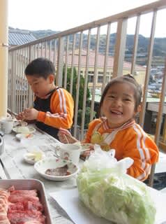 なんと天気にも恵まれてホットプレートで焼肉!です