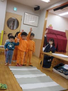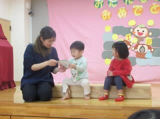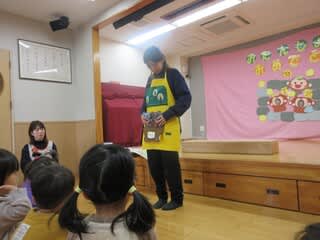 職員の出し物のエプロンシアターでは、いろんな仕掛けに子どもたちもくぎ付けでした!