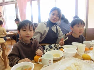 搗き立てのお餅を試食したり、温かい豚汁とお餅を昼食にとり、楽しい時間を過ごすことができました。