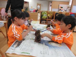 3歳児さんが手にしているのは、大きな松ぼっくり👀。