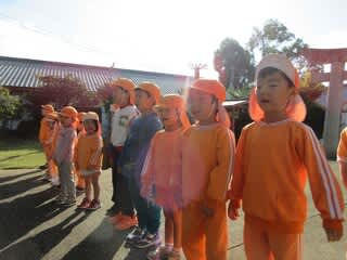 神様へ挨拶をした後は、境内の葉っぱをみんなでお掃除(^^)