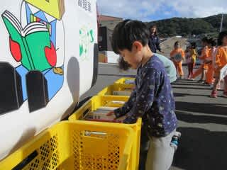 移動図書には幅広いジャンルの本がたくさん揃えてあります。