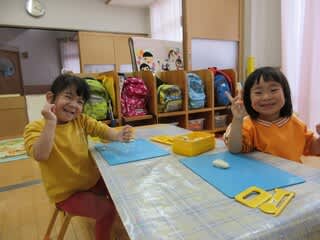 粘土や積み木などそれぞれ好きな玩具を選んで遊んでいます。