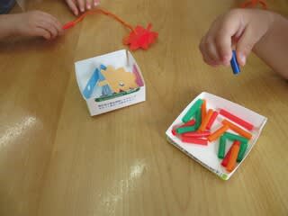 小さな穴の中に毛糸を通すのは大変ですが、黙々と取り組む姿がありました(*^▽^*)