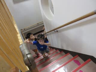 口や鼻を覆うことに加え、手すりを持って階段を登ること、万一を想定してしっかりと訓練することができました。