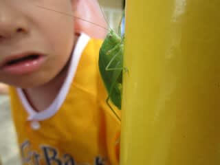 途中でカマキリを見つけましたが、急にカマキリが走り出し大騒ぎの子どもたち