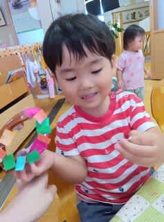 折り紙から輪っかを作って、あとは・・・デコレーション(*^▽^*)