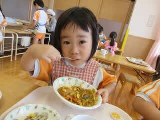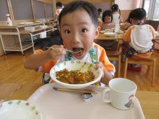 園内にカレーの香りが漂い、「やったーカレーだ\(^^)/」と子どもたちの身支度も素早いものです。