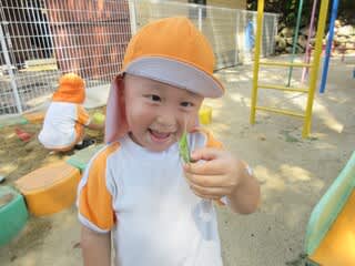 園庭に遊びに来ている虫を追いかけては捕まえ、「先生見て~」と見せてくれるお友だち。