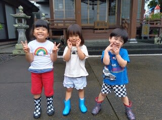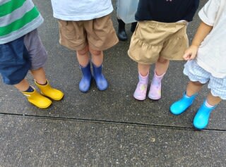 雨の日でも子どもたちは長靴や傘、レインコートで笑顔で登園しています(^^♪