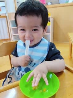 0歳児クラスの給食の様子です(*^^*)