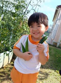 夏野菜を収穫した時の一コマです。