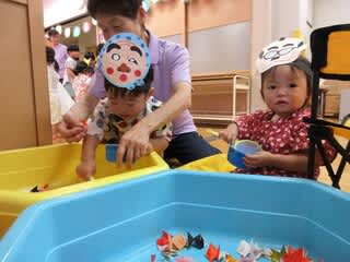 縁日コーナーやゲームに参加し、子ども達も保育士も楽しい時間を過ごすことができました♩