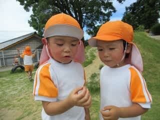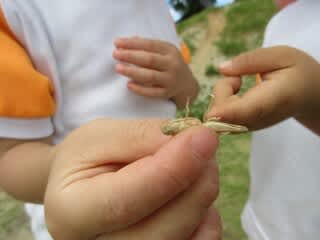 自然の中でたくさんの生き物に出会っている子どもたちです。