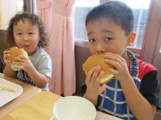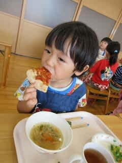 先日の誕生会での給食は、「ハンバーガー」か「ピザ」の選択食でした。