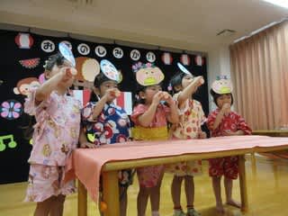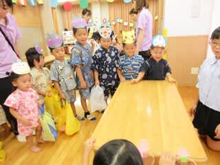 いつもと違って、甚平や浴衣に身を包み登園した子ども達。