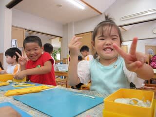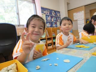 ちぎったり、丸めたり色んなものを造形して楽しんでいます(^^♪