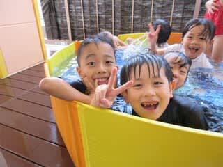 暑い日が続いているので、「気持ちいいね!」と子どもたちもこの笑顔(^^)