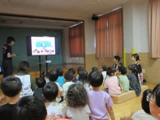 今月の避難訓練は、不審者から身を守るために教材を用いて学びました。
